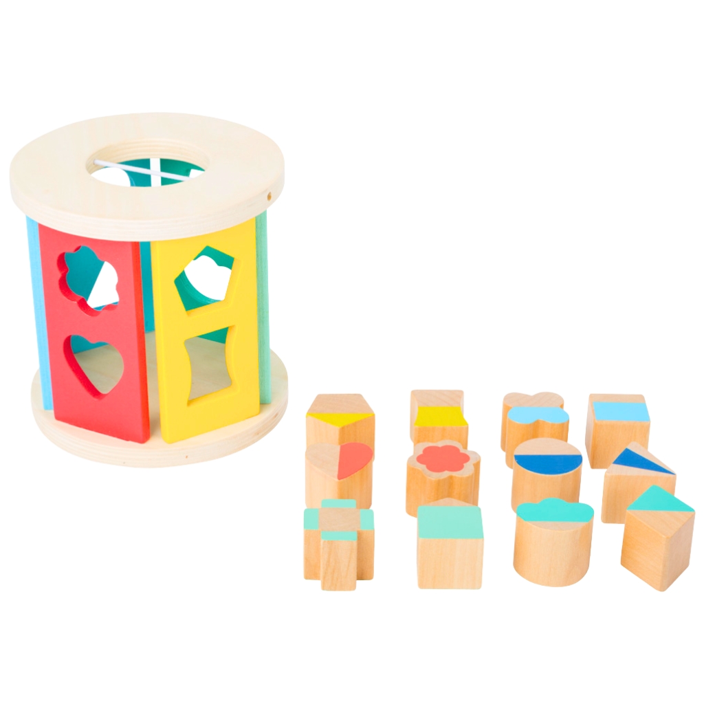 El cubo de clasificación de formas es fantástico para el desarrollo de habilidades en los niños. No solo mejoran la coordinación mano-ojo y la destreza manual, sino que también enseñan sobre formas y colores de manera divertida y atractiva. Además, el elemento sorpresa del ruido al rodar el cilindro añade un toque de emoción al aprendizaje. ¡Es maravilloso ver cómo los juguetes educativos pueden proporcionar tantos beneficios mientras los niños juegan y exploran! Material: madera. Edad: +12 meses.