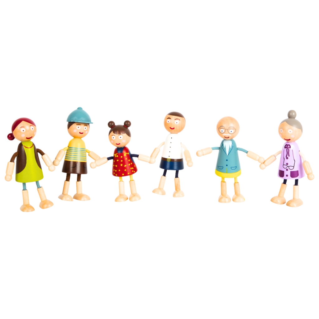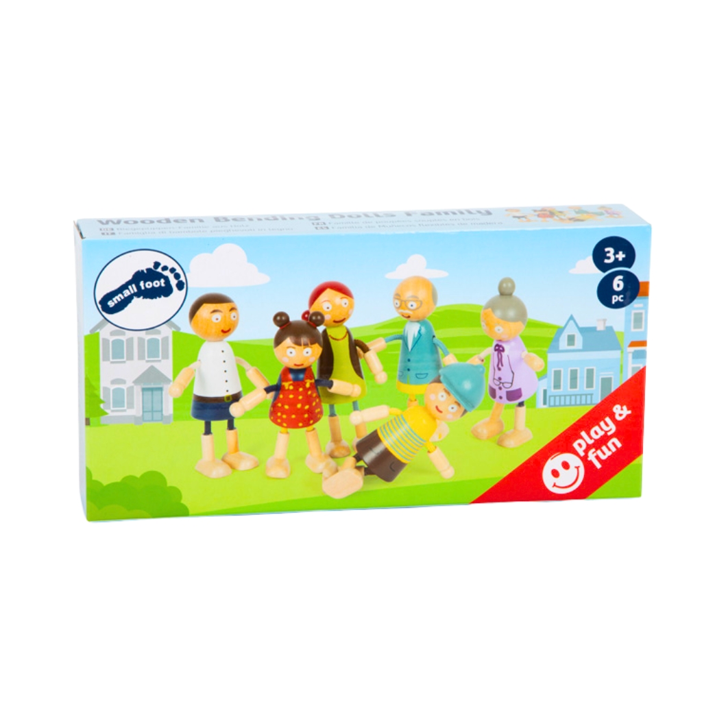 Los muñecos flexibles son verdaderamente una maravilla para la imaginación, permitiendo a los niños llevar a cabo representaciones de la vida diaria con una facilidad sorprendente. Con su diseño resistente y versátil, estos muñecos de madera y tela invitan a la creatividad y al juego interactivo, fomentando el desarrollo de habilidades motoras y la capacidad de narración. ¡Es fascinante pensar en todas las aventuras que pueden vivir dentro de las paredes de una casa de muñecas, con solo un poco de imaginación! Contenido: seis muñecos (mamá, papá, abuela, abuelo, hermano y hermana). Dimensiones: adultos 11x3x7,5 cm y niños 10x3x7 cm. Material: madera, tela. Edad: +3 años.