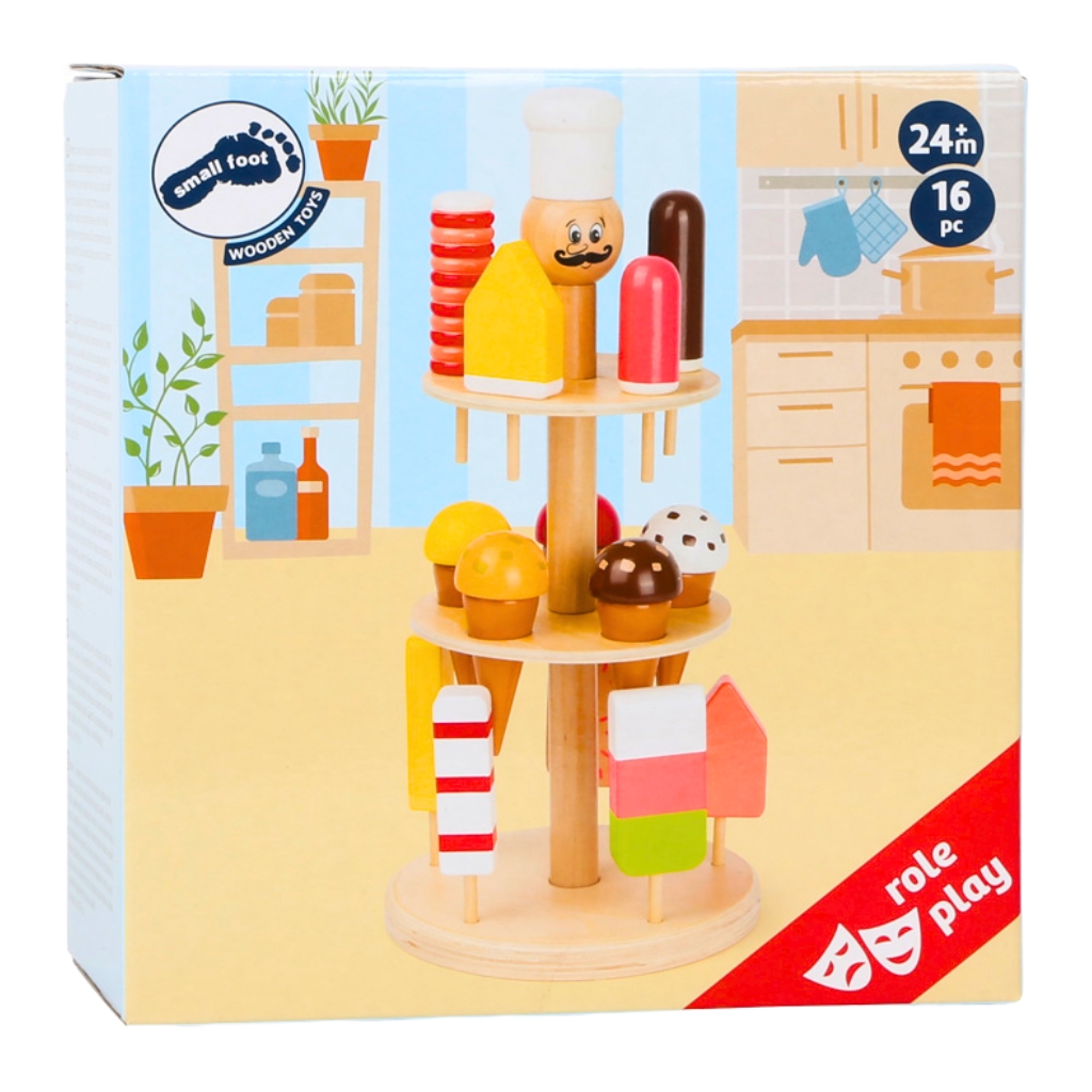 ¡Qué delicia es el mundo de los helados! Con una estantería de madera maciza, cada helado se convierte en una obra de arte visual y gustativa. Imagina los colores vibrantes y las texturas cremosas que invitan a todos a probar un bocado. Desde el clásico helado en barra hasta el delicioso helado en gofre, hay una opción para cada paladar. Y lo mejor de todo, esta estantería no solo es un deleite para los sentidos, sino también un juguete educativo y duradero que puede traer alegría a los más pequeños durante mucho tiempo. Contenido: soporte para helados con tres niveles y 15 helados diferentes (5 helados de gofre y 10 de paleta). Dimensiones: soporte 32x15 cm y palito de paleta 3,5x1,5x11 cm. Material: madera natural. Edad: +2 años.