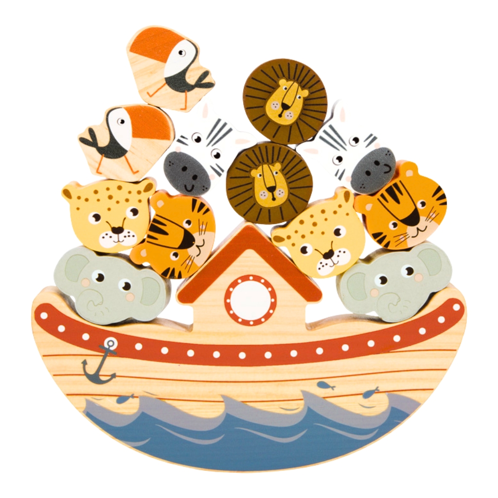 ¡El arca de madera es una aventura en miniatura! Con cada animal que se coloca cuidadosamente, los niños no solo se divierten, sino que también desarrollan habilidades cruciales de una manera lúdica y colorida. La combinación de colores vibrantes y diseños encantadores captura la imaginación, haciendo que cada sesión de juego sea una experiencia única. ¡Es el tipo de juego que reúne a la familia, desafiando a todos a ser pacientes y precisos, convirtiendo el momento de juego en tiempo de calidad! Contenido: arca de equilibrio y 12 bloques de construcción (6 parejas de animales). Material: madera. Edad: +3 años.