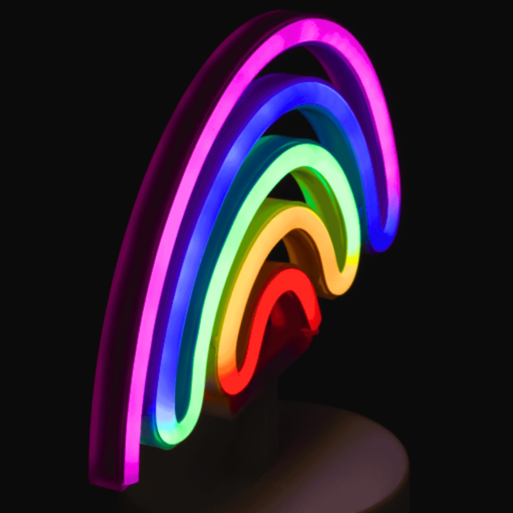 La luz de neón arcoíris son una fusión vibrante de arte y tecnología, ofreciendo una paleta de colores brillantes que pueden transformar cualquier espacio. Esta lámpara sirve como una fuente de luz y como una pieza central de decoración que puede animar y personalizar su entorno. Características: tres pilas AA. Material: plástico.