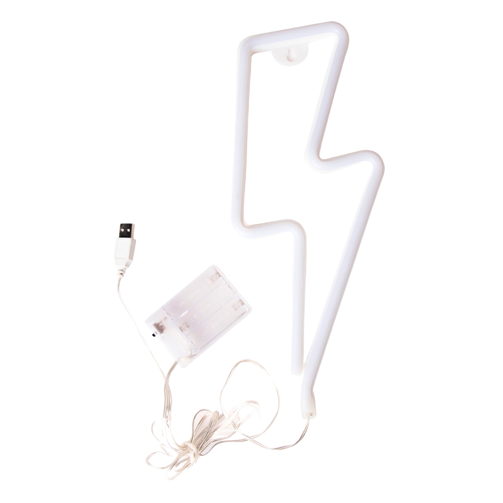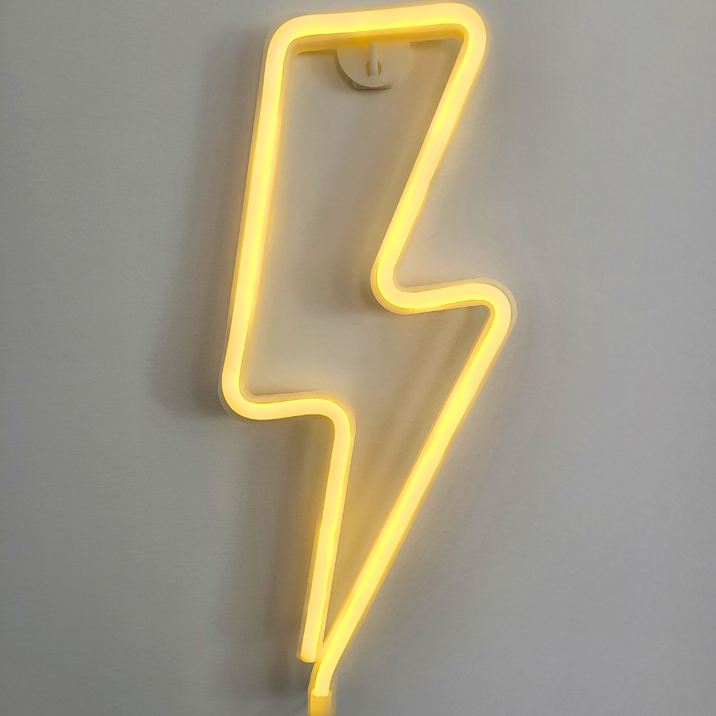 La figura luminosa con efecto neón en forma de rayo es una maravillosa adición a cualquier espacio, ofreciendo un brillo cálido y uniforme que captura la esencia de los clásicos neones con la seguridad y durabilidad del PVC. Su luz led amarilla, alimentada por pilas AA, crea un ambiente acogedor sin el parpadeo de los leds tradicionales. ¡Es una forma moderna y segura de añadir un toque de estilo y color a tu hogar! Características: botón de encendido ON/OFF, cable USB, funciona con 3 pilas AA no incluidas. Material: LED, PVC, termoplástico con soldadura de alta frecuencia (HF).