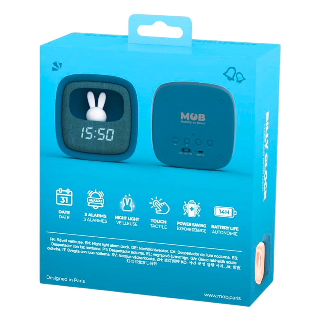 El despertador Billy no es solo un objeto funcional, sino una pieza encantadora de diseño que combina tecnología y confort. Con su luz nocturna cálida y ajustable, garantiza dulces sueños y un despertar sereno para los más pequeños. Su textura suave y amigable lo convierte en un amigo nocturno confiable, mientras que su capacidad de programación lo hace indispensable para los padres. ¡Billy es, sin duda, un producto que debe estar en cualquier habitación infantil moderna! Características: Luz nocturna, 14h de autonomía, 3 alarmas, visualización de la fecha y ahorro de energía.
